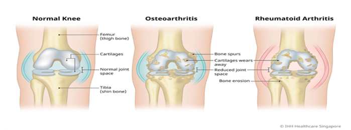 Your joints are composed of cartilage and synovial fluid that reduces the friction where the two bones meet. The cartilage wears away, reducing the space between the bones causing pain and joint damage. The bones begin to wear down the cartilage and will eventually damage the joint. Advanced joint damage may require physical therapy or even surgery.